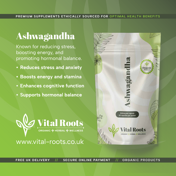 Hey there, wellness warriors! Are you feeling stressed or low on energy? Let’s talk about Vital Roots’ Ashwagandha supplement! This powerful adaptogen is your go-to for reducing stress and anxiety, helping you feel more balanced and calm. Each capsule packs a punch with 500mg of pure goodness, and with 30 capsules in every packet, you’ll be set for a month of wellness! But that’s not all! Ashwagandha also boosts your energy and stamina, making it perfect for those busy days. Plus, it enhances cognitive function, so you can stay sharp and focused. And the best part? You can grab this amazing supplement for just £19.99, and we’ll deliver it right to your door for free! So why wait? Elevate your wellness routine with Vital Roots’ Ashwagandha today and embrace a more balanced, energized you!